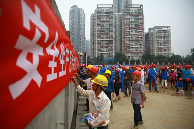啟動儀式上,集團(tuán)公司首先對安全生產(chǎn)月活動進(jìn)行了動員,對安全生產(chǎn)月活動提出了相關(guān)要求。隨后,華興美廬項目部負(fù)責(zé)人帶領(lǐng)現(xiàn)場所有員工作出安全承諾;同時,集團(tuán)公司團(tuán)委向項目部授予了“青安崗”崗牌,并向項目部及職工贈送了安全掛圖和安全知識手冊。在安全知識有獎問答環(huán)節(jié),現(xiàn)場的項目部員工和分包隊伍爭相回答主持人的提問,在贏得獎品的同時,再一次加深了對安全生產(chǎn)的認(rèn)識。儀式最后,現(xiàn)場所有人員還進(jìn)行了安全承諾簽名。