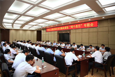 本次專題會由集團公司黨委書記、董事長程并強親自主持。各單位黨委(總支)書記匯報了黨風廉政建設“兩個責任”的開展情況。集團公司黨委副書記、紀委書記、副總經理劉偉傳達了習近平關于黨員干部作風建設的講話精神、中央關于加強保密工作的文件精神、中冶集團關于落實黨風廉政建設“兩個責任”的文件精神,同時就集團公司紀委履行黨風廉政建設監(jiān)督責任情況進行了匯報。