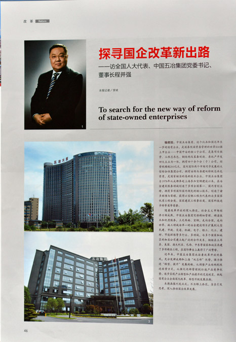 《當(dāng)代中國》畫報(bào)2015全國“兩會(huì)”特刊,以“探尋國企改革新出路”為題,對(duì)中國五冶集團(tuán)近年來轉(zhuǎn)型提升發(fā)展的歷程進(jìn)行了梳理。