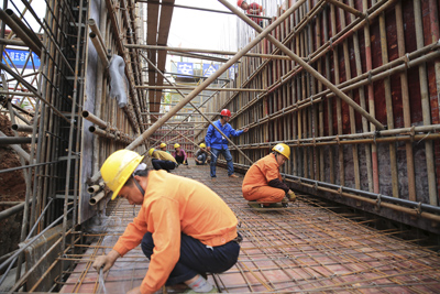4月4日早上8時許,第一批小組來到中國五冶集團新華之星項目部,現(xiàn)場已經(jīng)是一派忙碌的景象。近400余人在A、B兩個施工區(qū)域干得熱火朝天,據(jù)項目部管理人員介紹,為了保證4月底負二層底板澆筑和混凝土大體積澆筑,項目部從3月25日起就開始實施通宵倒班施工。路橋公司博覽城區(qū)域路網(wǎng)項目亦是如此,如今該工程已經(jīng)完成過半體量,清明假期,項目部組織530余人奮戰(zhàn)在一線,隨處可見來回過往的工程車輛和施工人員,緊張而有序。