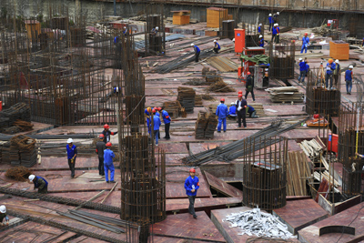 第二批小組于上午9時到達由四公司承建的藍光COCO國際項目。到達現(xiàn)場,項目部班子正在組織協(xié)調(diào)會議,就現(xiàn)場的安全文明施工、施工檢查等一些問題和環(huán)節(jié)進行安排和部署。在陜西公司錦和康城G地塊項目現(xiàn)場,我們看到項目部正組織400多名班組作業(yè)人員進行1#樓地下二層、2#樓地下一層的鋼筋綁扎、復測、檢查等工作,確保下午14時順利開始水泥澆筑。上午11時許,在一公司華新美廬項目部,項目部經(jīng)理正在為假日期間工作作最后的強調(diào)和部署。該項目位于成都市錦江區(qū)成龍路街道辦事處華新村1、2、7組,由八棟建筑構(gòu)成,建筑面積19.64萬平方米,是成都市2013年開工建設(shè)的7大保障性住房工程項目之中涉及規(guī)模最大、安置人數(shù)最多的一個工程。由于該工程工期緊、任務(wù)重,目前,項目部正加班加點確保該工程于7月份實現(xiàn)全面斷水的工程節(jié)點。