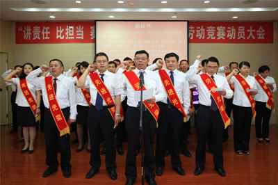 集團(tuán)公司董事長(zhǎng)、黨委書記程并強(qiáng)在會(huì)上作重要講話,對(duì)演講效果進(jìn)行了點(diǎn)評(píng),就如何開展好勞動(dòng)競(jìng)賽進(jìn)行了強(qiáng)調(diào)。他說(shuō):演講發(fā)言的八名員工代表,既有集團(tuán)公司領(lǐng)導(dǎo),也有機(jī)關(guān)部門負(fù)責(zé)人和二級(jí)單位負(fù)責(zé)人,還有基層一線的項(xiàng)目部負(fù)責(zé)人,他們分別從轉(zhuǎn)型、提升、擴(kuò)張發(fā)展方面談了講責(zé)任、敢擔(dān)當(dāng)?shù)母惺堋Ⅲw會(huì)以及個(gè)人的努力和實(shí)踐,體現(xiàn)了他們的敬業(yè)和奉獻(xiàn),從他們身上看到了我們五冶人敢擔(dān)當(dāng)?shù)木?,看到了兩?jí)經(jīng)營(yíng)層敢于拼搏的精神、敢于奮斗的精神、努力的工作狀態(tài),體現(xiàn)了五冶員工的敢擔(dān)當(dāng)、講敬業(yè)、負(fù)責(zé)任的精神;從他們身上看到了集團(tuán)公司轉(zhuǎn)型、提升、擴(kuò)張發(fā)展戰(zhàn)略的落實(shí),堅(jiān)定了我們發(fā)展的信心和決心。在開展勞動(dòng)競(jìng)賽動(dòng)員中,集團(tuán)公司各級(jí)勞模和先進(jìn)典型的代表進(jìn)行了鄭重承諾和集體倡議,有氣勢(shì)、有力量、鼓舞人心,為他們的擔(dān)當(dāng)精神、敬業(yè)精神和責(zé)任意識(shí)點(diǎn)贊。