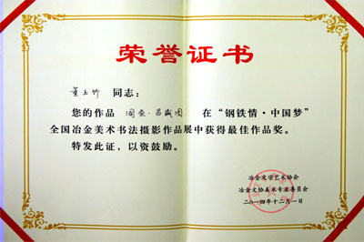 全國(guó)冶金美展最佳作品證書