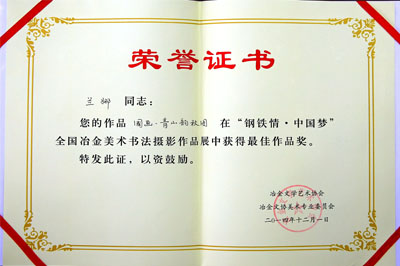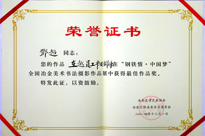 ?全國(guó)冶金美展最佳作品證書