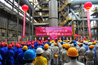9月15日上午,?在寶鋼焦二十路4#干熄焦處,彩旗招展,人聲鼎沸。寶鋼一期焦爐大修改造工程試生產儀式在此隆重舉行。寶鋼股份總經理戴志浩、副總經理智西巍,五冶集團上海有限公司總經理徐永鋒、副總經理汪忠旭及建設、設計、監理、施工方等單位代表約200人聚集一堂,共同見證了2A、2B爐同步出焦的歷史性時刻。