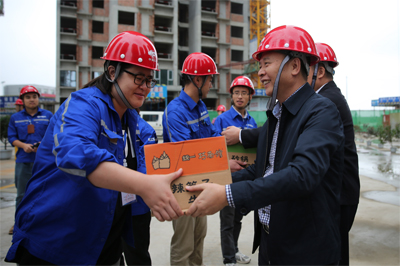 9月28日上午,在國慶佳節即將來臨之際,受中國五冶集團董事長、黨委書記程并強委托,公司領導蒙昌嘉、劉偉、萬明海及集團公司工會一行,來到成都錦和康城項目部,對奮戰在施工一線的廣大員工致以節日的慰問,祝大家節日快樂,身體健康。