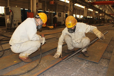 鋼構(gòu)生產(chǎn)車間工人們正在作業(yè)