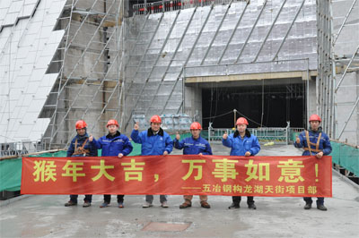 猴年新春來臨之際,也正是上海五冶鋼構公司“龍湖虹橋北區鋼結構連廊制安項目”履約的關鍵時期。作為項目部員工,雖然我們不能與家人團聚,但能為公司的轉型、提升、擴張發展盡自己的綿薄之力,卻足以讓我們自豪,我們愿與企業風雨同舟,共創美好明天!在此,代表項目部全體堅守崗位的員工,向公司廣大員工及家屬致以新春祝福,也祝愿集團在新的一年里,能蒸蒸日上,再鑄輝煌!