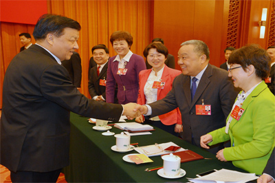 劉云山與全國人大代表程并強親切握手