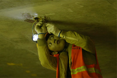 貴陽貴安新區大壩項目管理人員正在現場進行地下車庫頂板鋼筋驗收