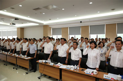 活動現場,集團公司黨委書記、董事長程并強帶領會場全體黨員面向黨旗莊嚴宣誓。按照集團公司黨委的安排部署,此次主題活動將進一步把“兩學一做”推向高潮。(曾堯/文 鄧超 費虎/圖)