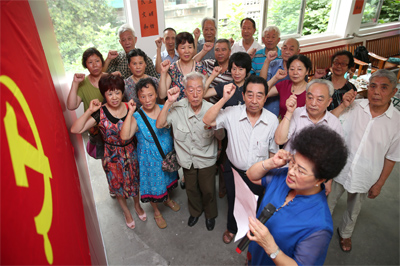 活動儀式上,白發蒼蒼的老黨員們排著整齊的隊列,面向黨旗高高舉起右手。在領誓人的帶領下,老黨員們重溫了入黨誓詞:“我志愿加入中國共產黨…… ”,響亮的聲音傳遞著他們滿懷的革命豪情,鮮紅的黨旗見證了他們對黨的無限忠誠。活動期間,老干部們現場即興歌唱革命歌曲,并組織了黨員知識競賽及手抄黨章書法作品展等一系列活動,老干部們紛紛表示:今天的活動,讓自己又重新回顧了申請入黨時的思想激情與奮斗追求,進一步增強了自身作為一名黨員的光榮感和責任感,奮斗精神不懈怠,余熱生輝,為構建和諧五冶貢獻自己的力量。(鄧超)