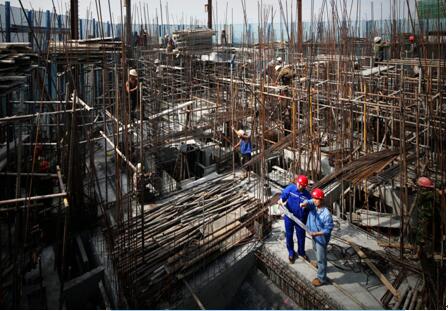 新華之星B區核心筒正在現場指揮的管理人員