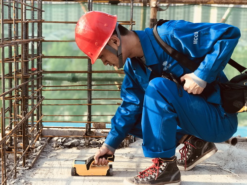 華北公司榮盛項(xiàng)目人員對(duì)樓板鋼筋間距保護(hù)層檢查