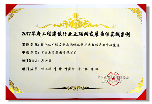 6月14日,在由中國施工企業管理協會主辦的“第四屆工程建設行業互聯網大會”上,公司重慶仙桃數據谷項目被評選為2017年度“中國工程建設行業互聯網發展最佳實踐案例”并應邀在大會期間展示。