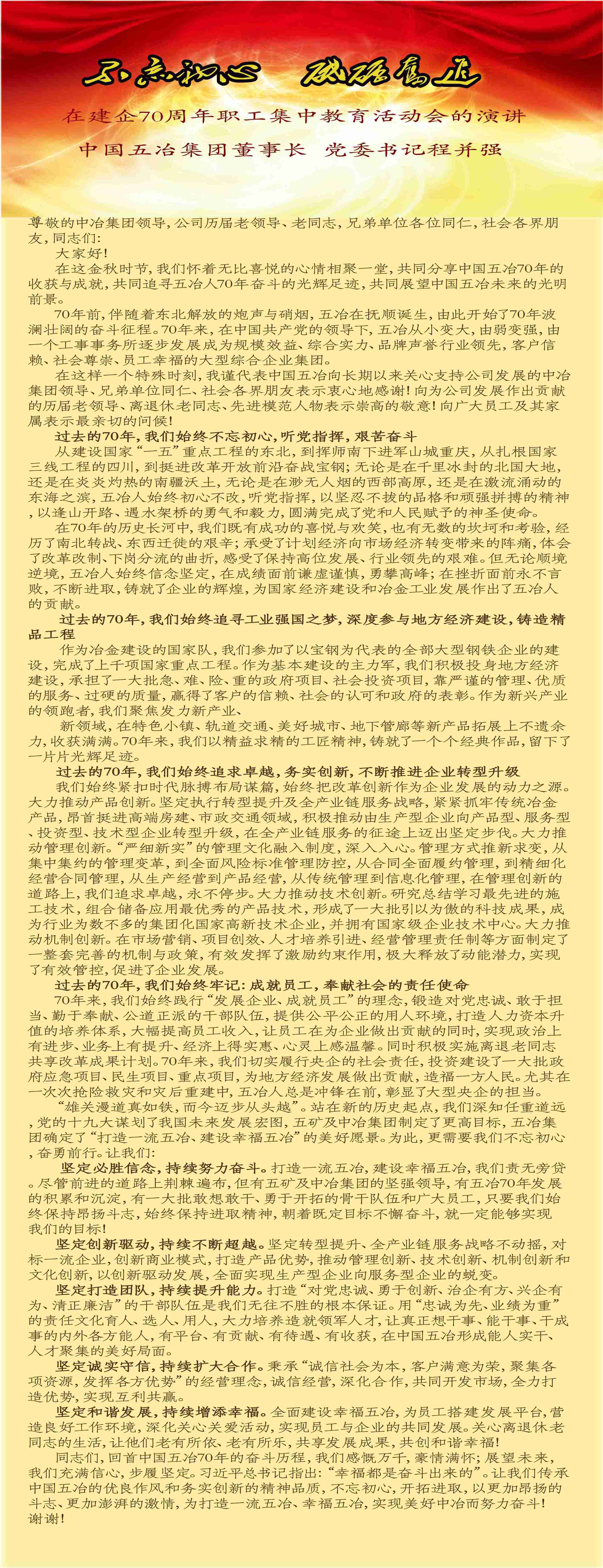 上一篇:程并強(qiáng)與中國(guó)五冶集團(tuán)70周年廠史教育活動(dòng)演職員工座談
