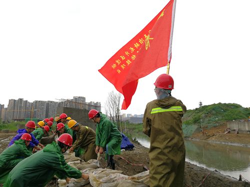 18日清晨,成都騎龍道排工程二、三標段項目值班人員巡查時,發現大源28線靠欄桿堰處排水管道出水口已被淹沒。此時風疾雨大,水流裹夾著泥沙和樹枝預估1小時內便會漫過河堤涌進修建的路基、檢查井。得知消息后,項目部立即啟動防洪救災應急預案,組織全體青年先鋒突擊隊員,兩兩配合填裝砂袋,堆碼擋水坎,做好引流排水工作。僅三小時,就在橋臺兩端砌筑了長50多米的沙袋堤壩。淋濕了雨,汗浸了背,每位隊員卻都笑容滿面。項目經理向貴學感慨到:“平時看著這群年輕人文質彬彬,但緊急時刻都敢沖敢上、能干肯干,大家都是好樣的!”