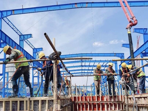 首鋼遷安新能源汽車電工鋼項目人員正在進行涂機段設備基礎地下室墻板澆筑