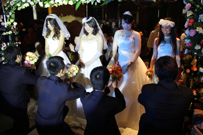 婚禮當天,四公司工會代表該公司全體員工為新人送上祝福,何陵驥為四對新人證婚,宣布四對新人結為恩愛夫妻,譚興山恭祝四對新人永結同心、鐘愛一生、美滿幸福!新人在親戚朋友和同事們的共同見證下,大聲齊呼“我們結婚啦!”,激動的心情難于言表,相擁喜極而泣,感謝大家給了他們一個難忘的婚禮。