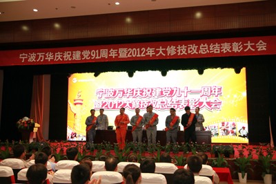 最近,寧波萬華聚氨酯有限公司召開2012年大修技改總結表彰大會對五冶集團上海有限檢修公司本次年大修工作給予充分肯定,并頒發“特殊貢獻獎”予以鼓勵。