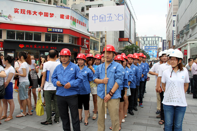 7月2日,在中國五冶集團承建并正式通行后的成都市紅星路廣場上,萬人攢動,鑼鼓喧天、熱鬧非凡,這里正在舉行一場由成都市錦江區主辦的“實現偉大中國夢,建設美麗繁榮和諧四川”大型簽名活動。曾榮幸參與了紅星路街區綜合整治項目工程蜀都大道至東大街路段建設的中國五冶集團一公司項目團隊和機關各部門代表40余人組隊參加了活動。
